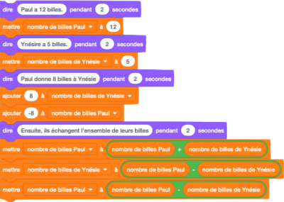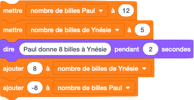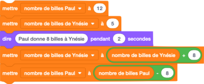 Paul a 12 billes. Ynésie en a 5. Paul donne 8 billes à Ynésie (il est amoureux). Combien lui en reste-t-il ? Combien en a donc Ynésie ?