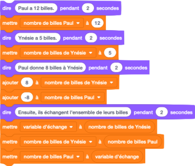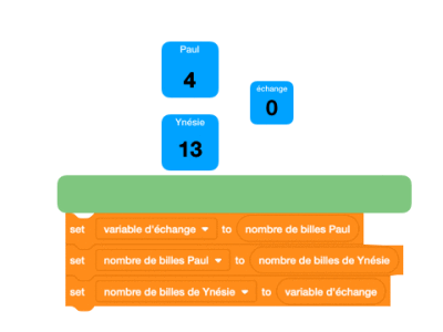 Nous ne verrons pour l'instant que des variables "Pour tous les lutins", on les appelle des variables globales, tous les lutins et la scène y ont accès.